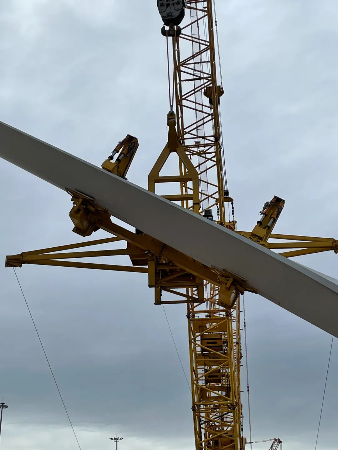 快報!君威股份/東方電氣10MW斜插式單葉片夾具順利通過用戶SAT葉片測試2022年10月22日下午3點,福州平潭金井碼頭港區(qū)內(nèi),君威股份為東方電氣設(shè)計制造的10MW大角度斜插式單葉片夾具順利完成用戶要求的所有功能測試和SAT葉片夾持大角度旋轉(zhuǎn)試驗。本次試驗的10MW葉片重約38噸,長度90米,整個試驗過程平穩(wěn)有序,嚴(yán)格謹(jǐn)慎,逐項完成各項功能測試,通